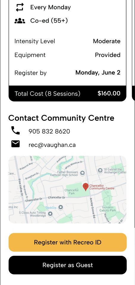 Recreo streamlines finding and signing up for recreational activities for Baby Boomers by simplifying the registration process, providing multilingual support, and drawing conversational aspects from the experience of in-person sign-ups.